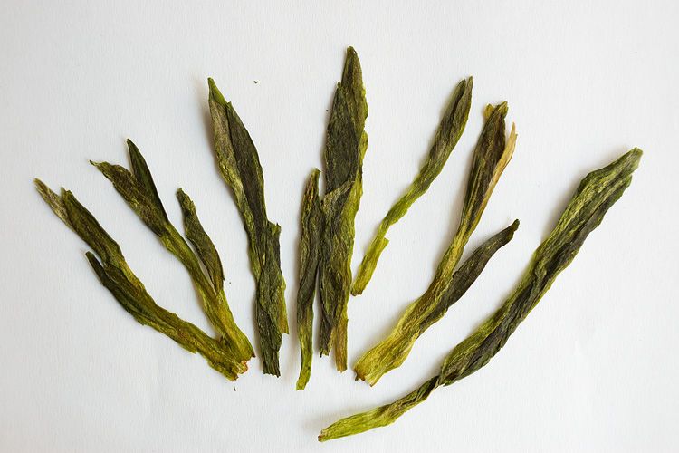 Typischerweise hat der Lung Ching-Tee ein sehr flaches und kompaktes Aussehen und