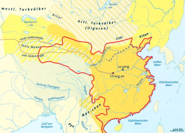 mit der nie da gewesenen Ausdehnung und die florierende Wirtschaft der Tang-Zeit