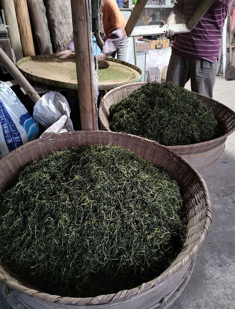 Huangshan Mao Feng aus Fuxi zählt zu den besten und bekanntesten Tees aus der Provinz Anhui und ist unter den Top 10 Tees. Die Blätter werden von wild wachsenden Teesträuchern geerntet und sind handverarbeitet. Durch das Walgen besitzen diese eine festere, leicht gekäuselte Struktur mit dunklerer Farbe mit einem ausgeprägterem Aroma. Das fruchtige Aroma erinnert an Aprikosen oder Äpfel. Der Tee kann wiederholt aufgegossen werden und wird nicht bitter.